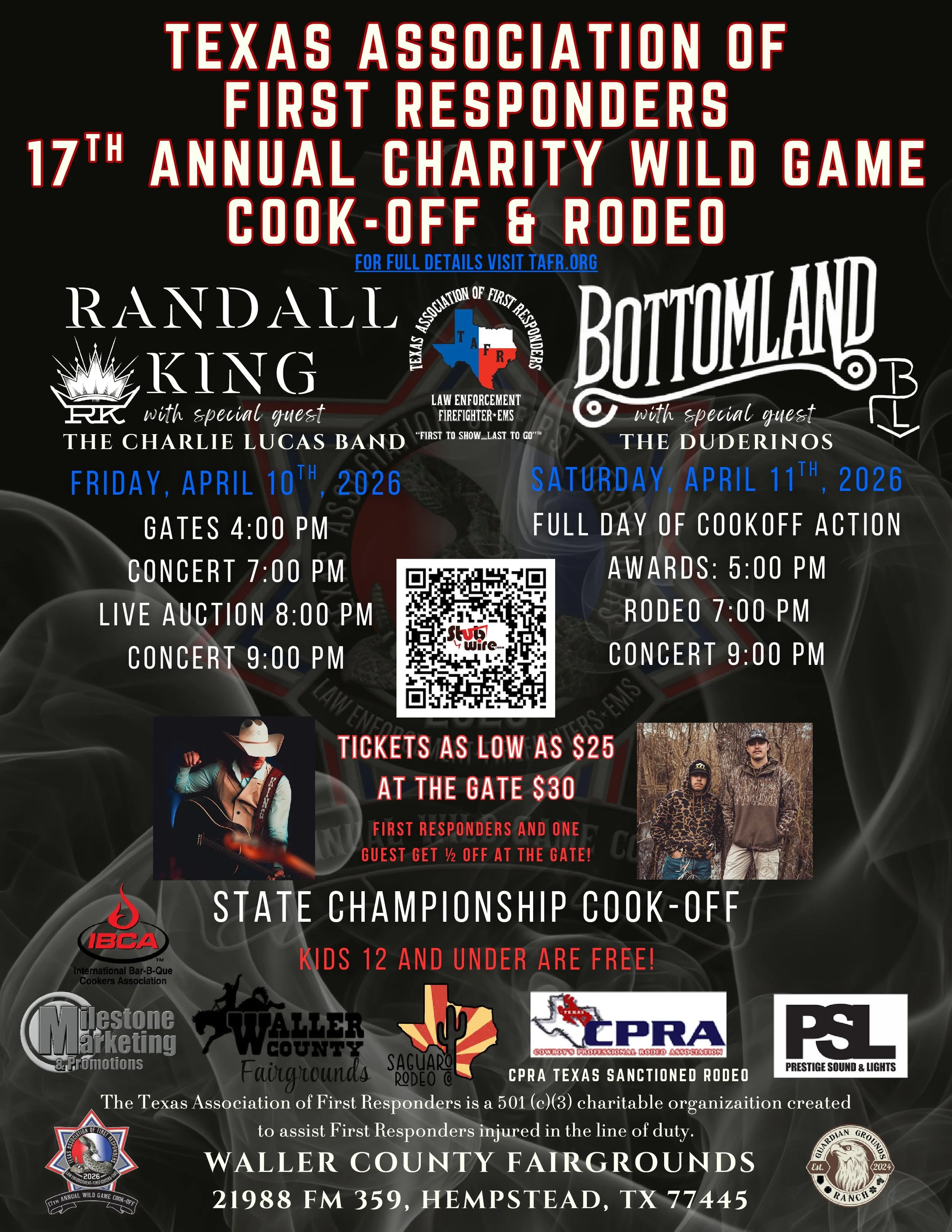 The Texas Association of First Responders is pleased to announce the 17th Annual Wild Game Cook-Off and Rodeo.